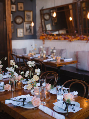 Inspired by the monarch butterfly, a supreme fall palette for a baby shower in November! Shades of blush, peach, deep orange, rust, and creams. Coquette bow details. Autumnal highlights of maple leaves and marigolds. Flowers on flowers, because what else would you expect for our little flower child to be?!Hosted in the fabulous French Satis Bistro located in Jersey City, it was intimate, elevated, and perfect.